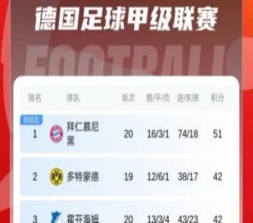 连场刹车!德甲积分榜:拜仁近2轮1平1负,先赛仍9分领跑