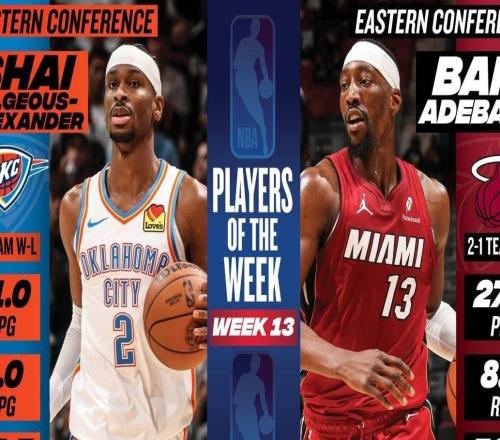 北京时间1月20日,NBA官方公布了第13周东西部的最佳球员,迈阿密热火的阿德巴约和俄克拉荷马雷霆的亚历山大分别...