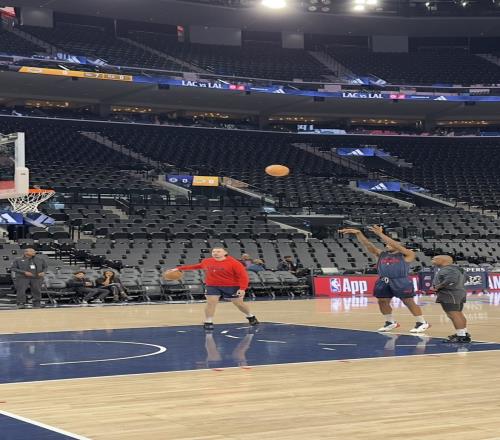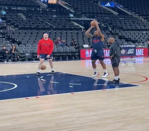 据快船随队记者Tomer Azarly报道,快船伦纳德赛前来到了场上进行热身。