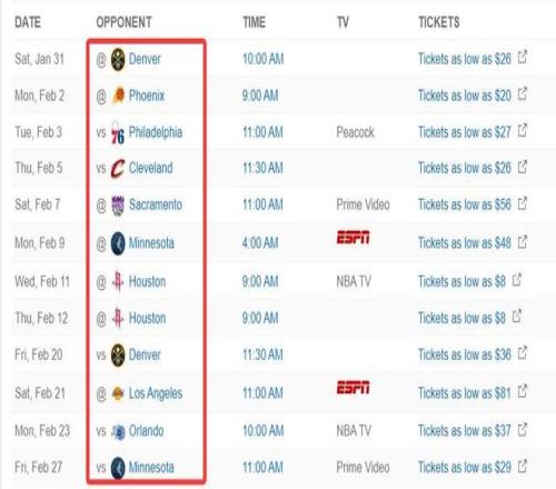 但快船还有一道坎儿那就是接下来的12场比赛,大家能看到除了2月7日VS国王之外,快船分别要打:掘金(2)、太阳、费城、骑士、森林狼(2)、火箭(2)、湖人、魔术,如果这12场比赛快船能拿下其中一半的胜利,那么接下来快船的赛程会非常容易。