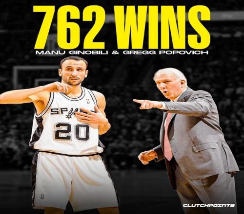 其中,邓肯与波波维奇搭档拿下1001场胜利,排名历史第一,历史前十中仅有两队搭档是现役球员与现役主帅。