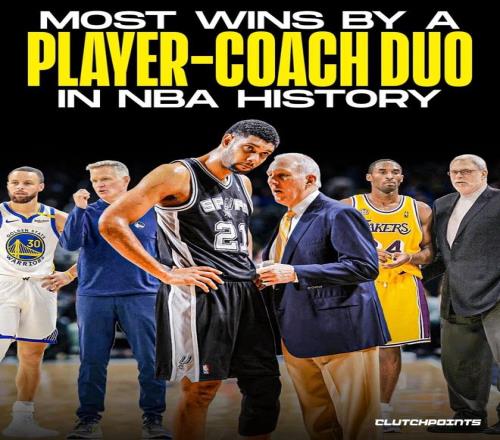北京时间1月28日,美媒clutchpoints统计了NBA历史上球员&教练搭档赢球场次,并进行排名。