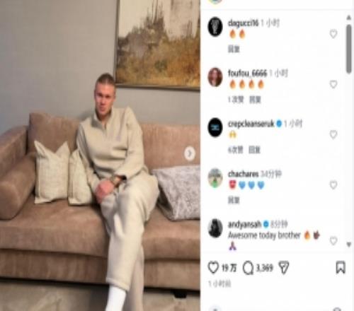 优雅!哈兰德个人社媒晒出两张端坐沙发摆拍照片